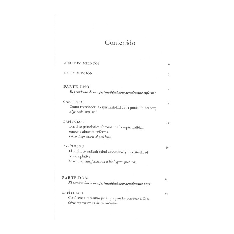 En este libro, Scazzero resume su jornada y los signos reveladores de una espiritualidad emocionalmente enferma. Asimismo, presenta siete formas bíblicas y probadas en la práctica, de abrirse paso a la vida revolucionaria que Cristo quiso que tú vivieras.