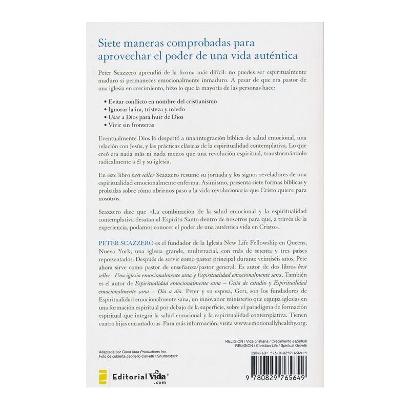 Siete maneras comprobadas para aprovechar el poder de una vida auténtica. Peter Scazzero aprendió de la forma más difícil: no puedes ser espiritualmente maduro si permaneces emocionalmente inmaduro. A pesar de que era pastor de una iglesia en crecimiento, él hizo lo que la mayoría de las personas hace: