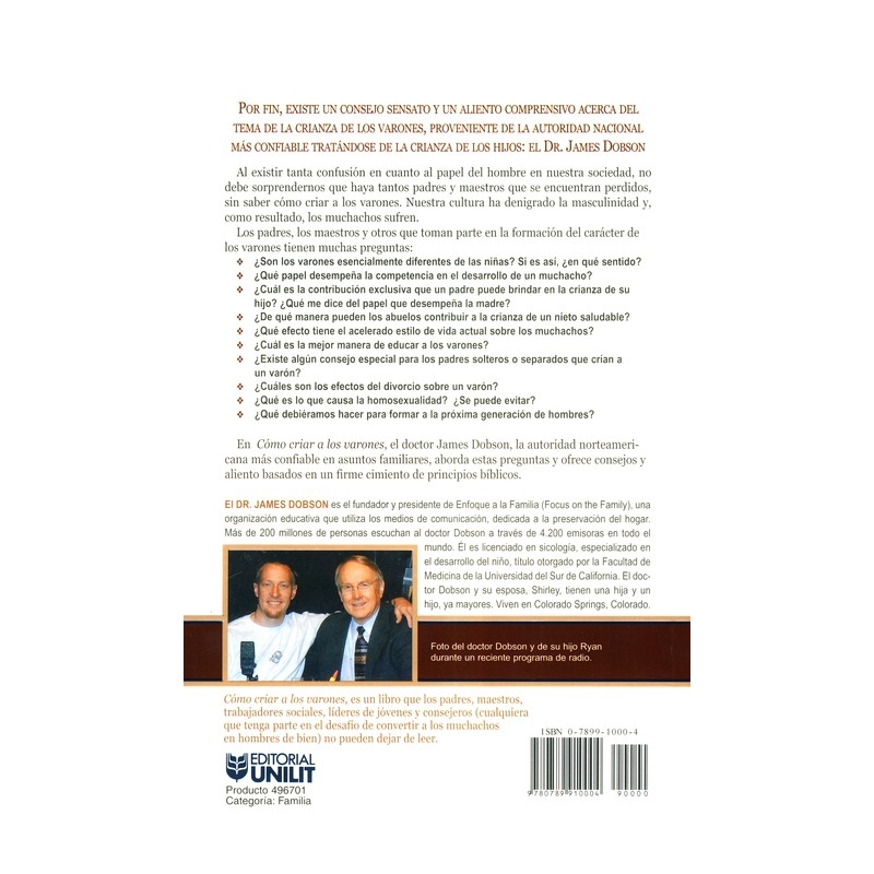 De la autoridad más confiable en el tema de la crianza de los hijos, el Dr. James Dobson, da consejos sensibles y estímulo acerca de cómo criar a los hijos varones. Con tanta confusión en referencia al papel del hombre en la sociedad, no es ningún asombro ver como tantos maestros y padres se sienten perdidos acerca del tema. Nuestra cultura ha difamado la masculinidad y como consecuencia, los muchachos están sufriendo.