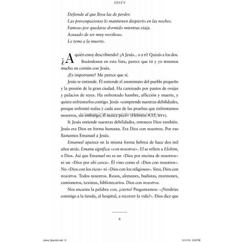Al explorar la vida, la muerte y la resurrección de Jesús, así como detalles específicos: como la forma en que interactuó con sus amigos y enemigos, lo que hizo con su tiempo solo, cómo actuó en una fiesta, etc. esta compilación de Max Lucado, ahora con contenido original nunca visto, Max les da a los lectores la oportunidad de familiarizarse con el hombre que está en el centro de la historia más grandiosa jamás contada.