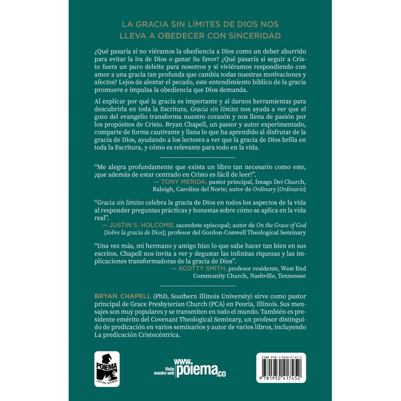 Al explicar por qué la gracia es importante y al darnos herramientas para descubrirla en toda la Escritura, Gracia sin límites nos ayuda a ver que el gozo del evangelio transforma nuestro corazón y nos llena de pasión por los propósitos de Cristo. Bryan Chapell, un pastor y autor experimentado, comparte de forma cautivante y llana lo que ha aprendido al disfrutar de la gracia de Dios, ayudando a los lectores a ver que la gracia de Dios brilla en toda la Escritura, y cómo es relevante para todo en la vida.
