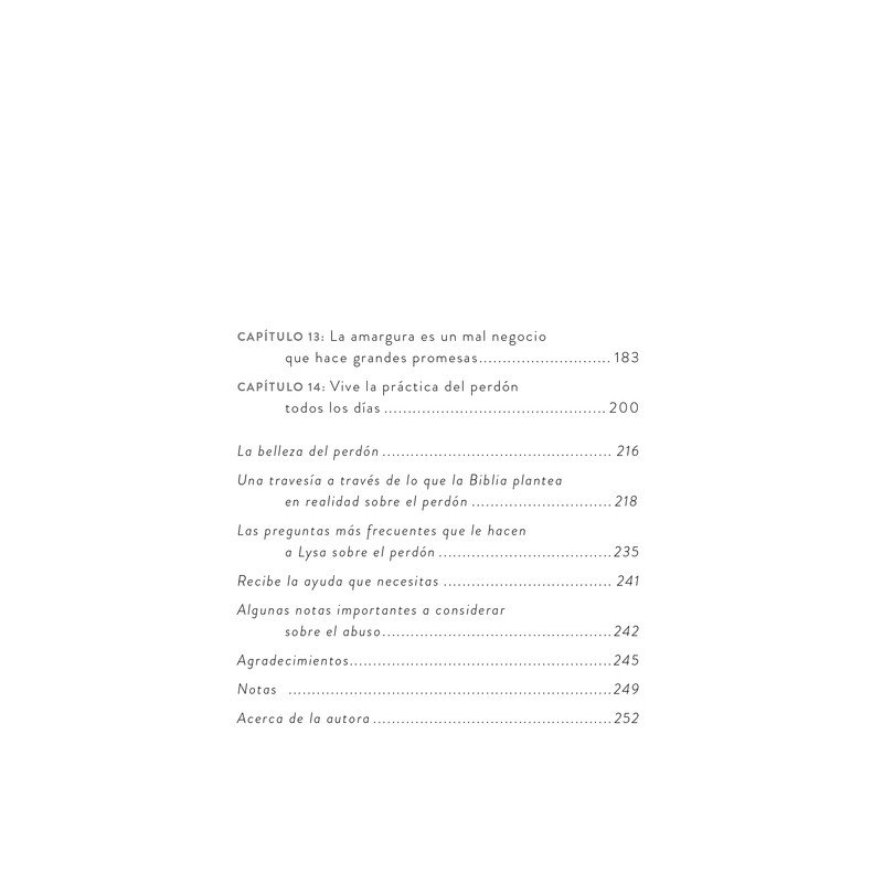 Lysa TerKeurst ha recorrido este viaje, luchando con heridas profundas y sufriendo para avanzar. Y ha descubierto que, para encontrar la libertad que da vida, hay que dejar de lado el resentimiento y la resistencia para perdonar a las personas que no están dispuestas a hacer las cosas bien. Con una profunda empatía, una visión terapéutica y una rica enseñanza bíblica tras 1.000 horas de estudio, Lysa te ayudará a: