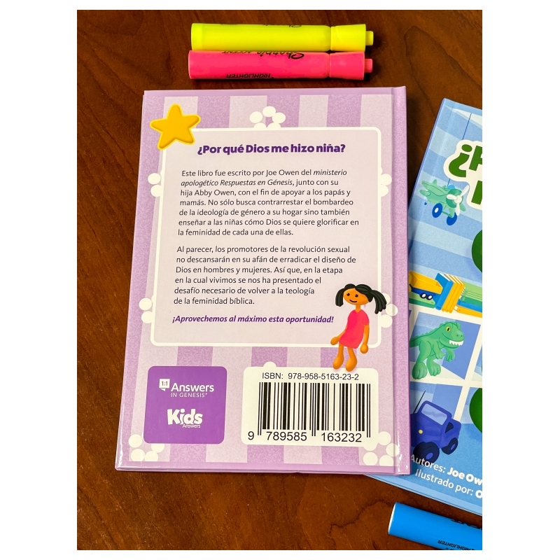Estos dos libros, ¿Por qué Dios me hizo una niña? y ¿Por qué Dios me hizo un niño? fueron escritos por Joe Owen del ministerio de apologética Answers in Genesis, junto con su hija Abby Owen, para apoyar a las mamás y los papás no solo a contrarrestar el bombardeo de la ideología de género en su hogar, sino también para enseñar a los niños cómo Dios quiere glorificarse a sí mismo. en su respectiva masculinidad o feminidad. Dado que ninguno de nosotros ha vivido por ella, estos libros también presentan el mensaje de la redención de Cristo y cómo solo en Él y por Él podemos vivir en los aspectos estructurales y funcionales de la imagen de Dios en nosotros para la gloria de Dios en Cristo.