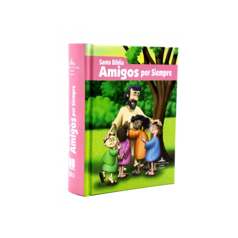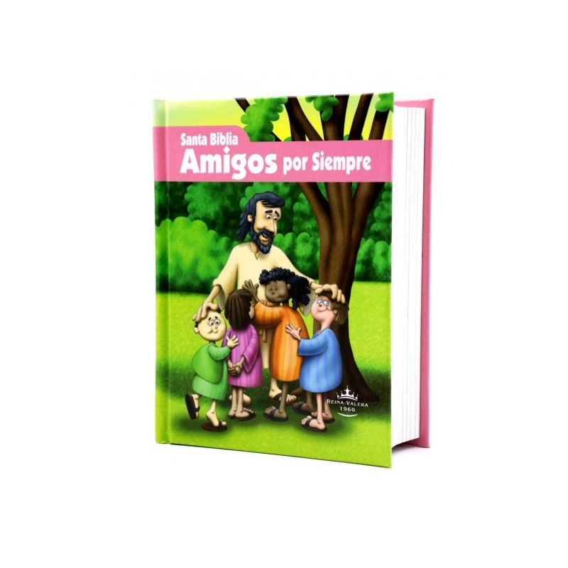Biblia de bolsillo que contiene 56 hermosas ilustraciones a todo color, insertadas en el texto y que muestran escenas bíblicas que ayudan a fijar los valores cristianos a los niños. Con ésta Biblia, Jesús se convertirá en el "Amigo por Siempre" de los niños en sus tiempos devocionales, de lectura, en la iglesia, en el hogar. El tamaño le permite al pequeño llevarla a cualquier lugar. Tiene una encuadernación resistente que le permitirá tener mucha durabilidad. La concordancia es de 122 páginas, contiene 14 mapas para ayudar a ubicar los lugares, notas de ayuda para facilitar la búsqueda de pasajes bíblico y un marcador de tela para señalar los pasajes y páginas de lectura.