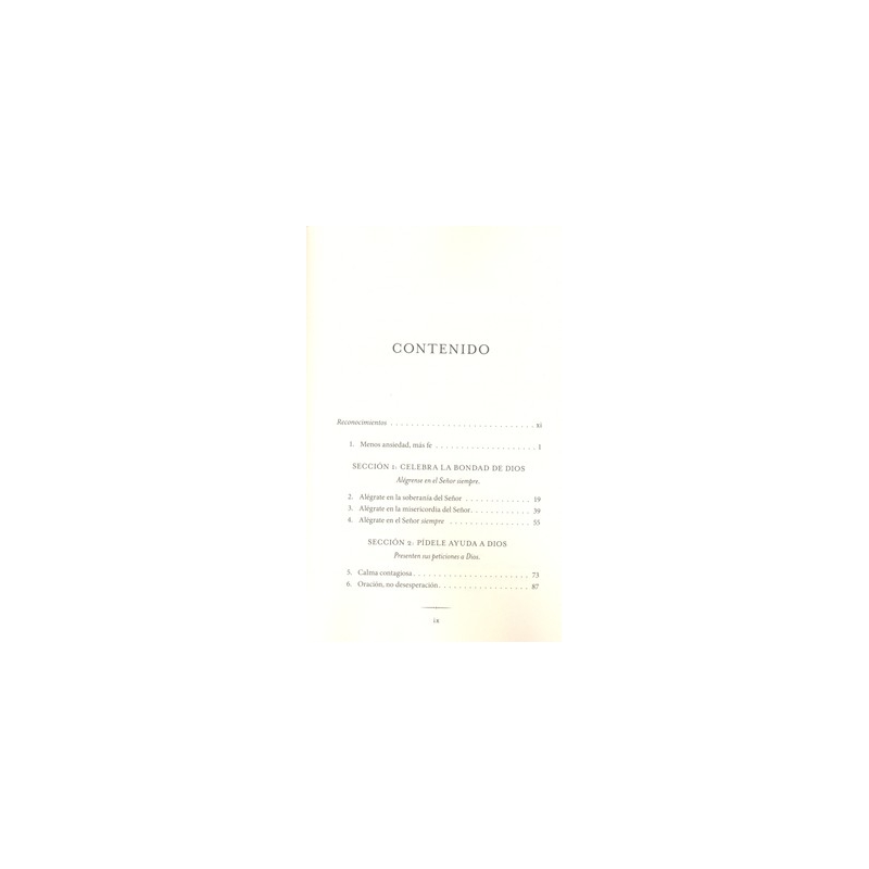 En todo momento tenemos mucha ansiedad, pero existe una receta para lidiar con ella. Max Lucado invita a los lectores a un estudio de Filipenses 4.6-7 donde el Apóstol Pablo amonesta a los seguidores de Cristo, "Por nada esteis afanosos...".
