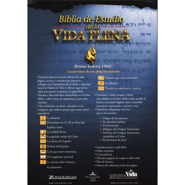 Contiene cuarenta y cuatro mapas y tablas intercaladas en el texto bíblico para ayudar al lector a encontrar lugares clave y entender conceptos importantes a primera vista. Contiene veintiocho diagramas entre los que se encuentran los siguientes: origen de las naciones, calendario hebreo, tabernáculo, milagros del Antiguo Testamento, profecías del Antiguo Testamento cumplidas en Cristo, ministro de Jesús. También incluye introducciones a cada libro, indica temático, concordancia, dieciséis páginas de mapas a todo color, plan de lectura, y sistema de referencia al pie de la página. Palabras del Señor Jesús en Rojo