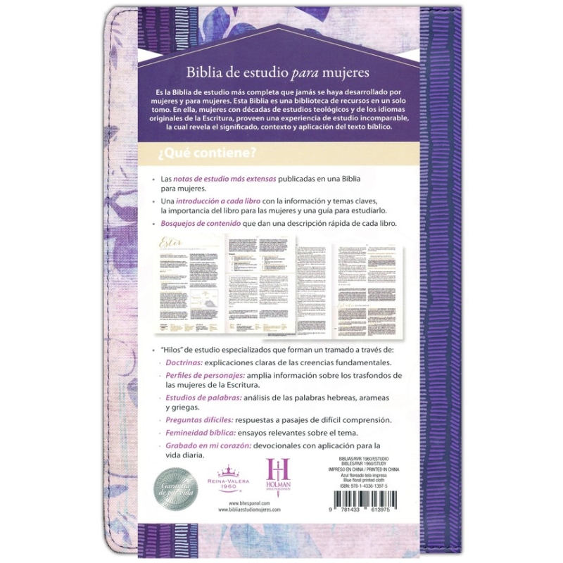 En La Biblia de Estudio para Mujeres, te unirás a una multitud de mujeres académicamente preparadas en los idiomas originales de la Biblia y apasionadas por la Palabra de Dios. Con ellas te sumergirás de manera íntima y profunda en la Escritura, para recibir las herramientas que te ayuden a desentrañar las riquezas y la majestad de Su Palabra, y para encender la pasión para guiar a otros a tu alrededor a que hagan lo mismo.
