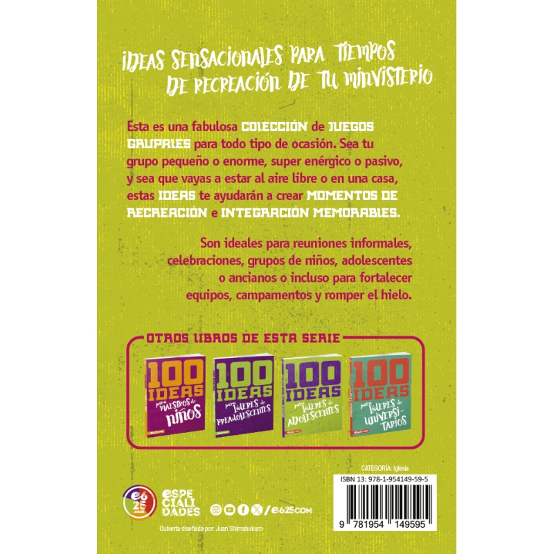 Esta es una fabulosa colección de juegos grupales para todo tipo de ocasión. Sea tu grupo pequeño o enorme, super enérgico o pasivo, y sea que vayas a estar al aire libre o en una casa, estas ideas te ayudarán a crear momentos de recreación e integración memorables.