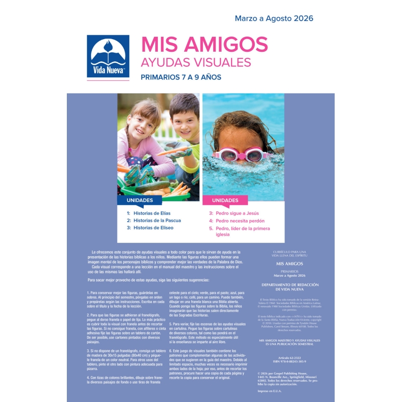 Guía de enseñanza llena de ideas para el maestro. Manualidades para los mas pequeños y atractivas láminas a todo color para ilustrar las historias de la Biblia.