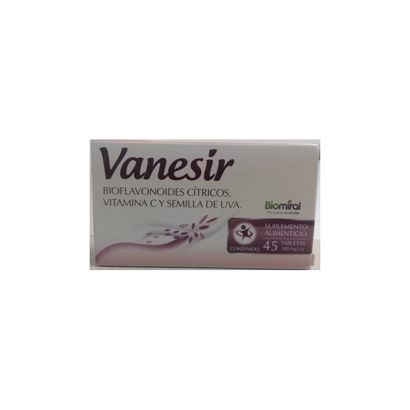 VANESIR (BIOFLAVONOIDES CITRICOS, VITAMINA C Y SEMILLA DE UVA ) 500MG 45 TABLETAS