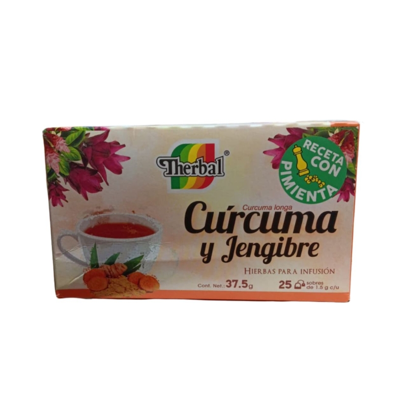 CURCUMA Y JENGIBRE (THERBAL) HIERBAS PARA INFUSION RECETA CON PIMIENTA 25 SOBRES