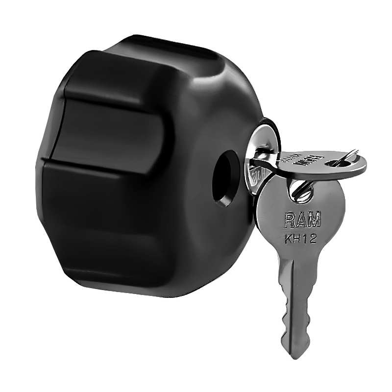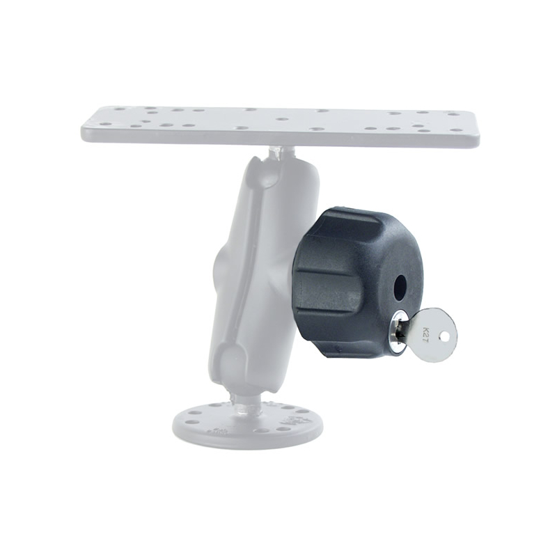 La perilla de seguridad RAM-KNOB3LSU incluye una chapa de latón e inserto de acero y puede ser utilizado como reemplazo a la tuerca mariposa estándar en brazos de todos tamaños con entrada de 1"