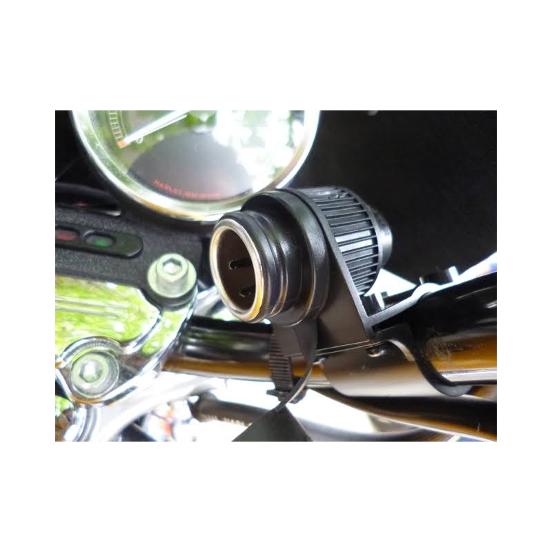 Este cargador modelo TC-6613WB con cable extension aprobado por FCC y CE, le permite conectarse directamente de la bateria y obtener en el otro extremo un enchufe tipo encendedor de cigarrillos que incluye un soporte de manillar para montaje en diversos tipos motos.