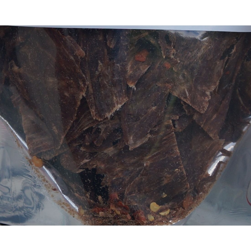 Laminas 100% de carne seca calidad premium MARINADA. Rica en proteína con un bajo porcentaje de sodio y prácticamente libre de grasas