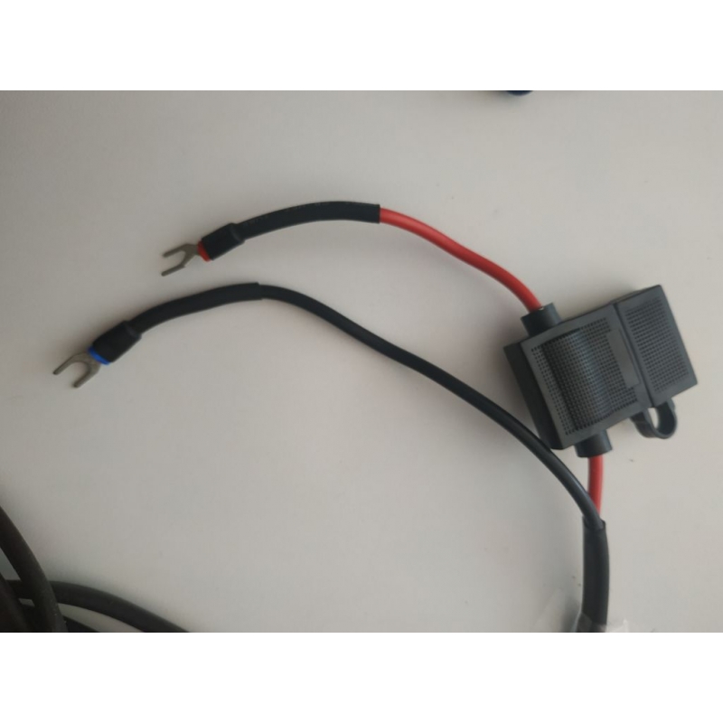 Paso uno: comience colocando el conector del relevador en el vehículo, deberá ubicarse lo más cerca de la batería para que la conexión a la alimentación de poder se pueda realizar al final de la instalación. (El cable de la terminal de la batería tiene una longitud de 61cm)