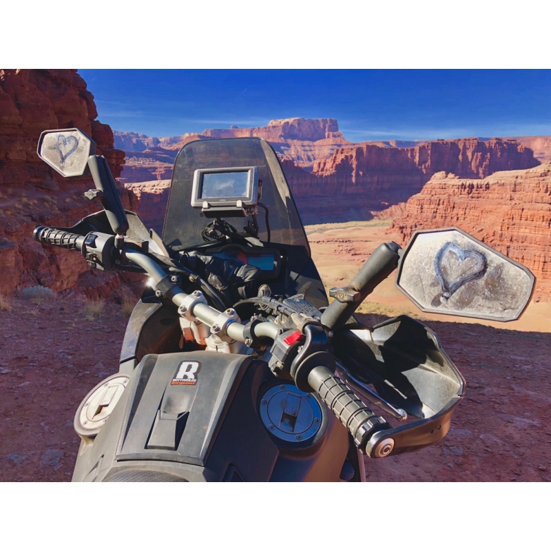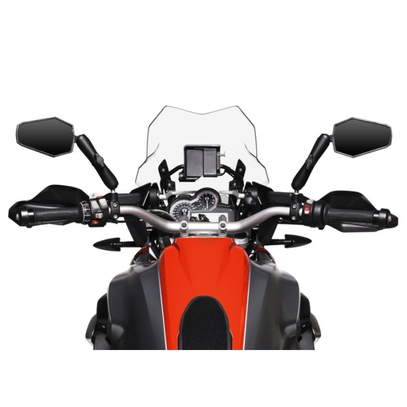 El modelo Adventure tiene un gran campo de visión y es muy adecuado para grandes motos doble propósito. De la línea Doubletake, esta es la más estable a altas velocidades, pero es menos compacta para plegarla que el espejo Enduro.