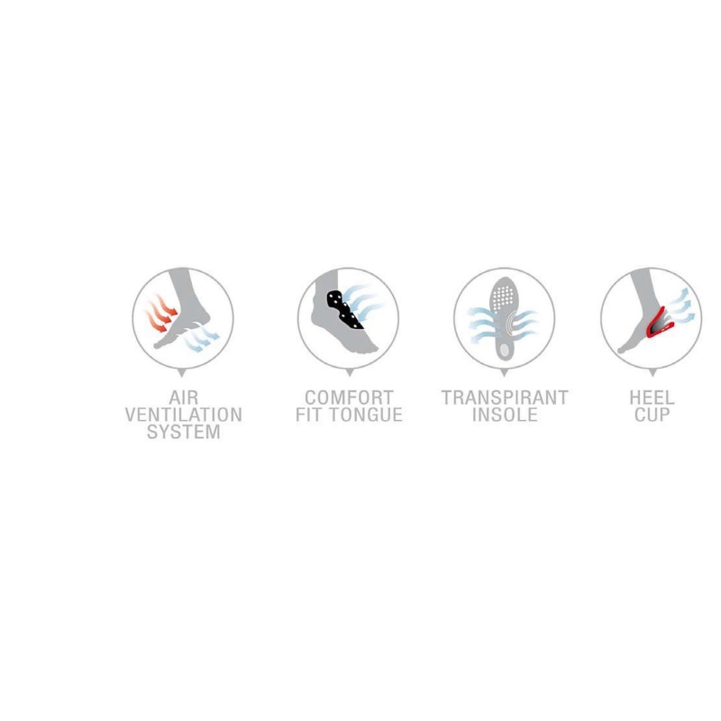 TALÓN: talón anatómico totalmente nuevo moldeado por inyección que no se deforma ni se debilita. Con su forma anti-tendinitis y su tratamiento interno antideslizante, permite la mejor estabilidad y control del pie. Las inserciones reflectantes brindan la máxima visibilidad en condiciones de poca luz.
