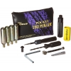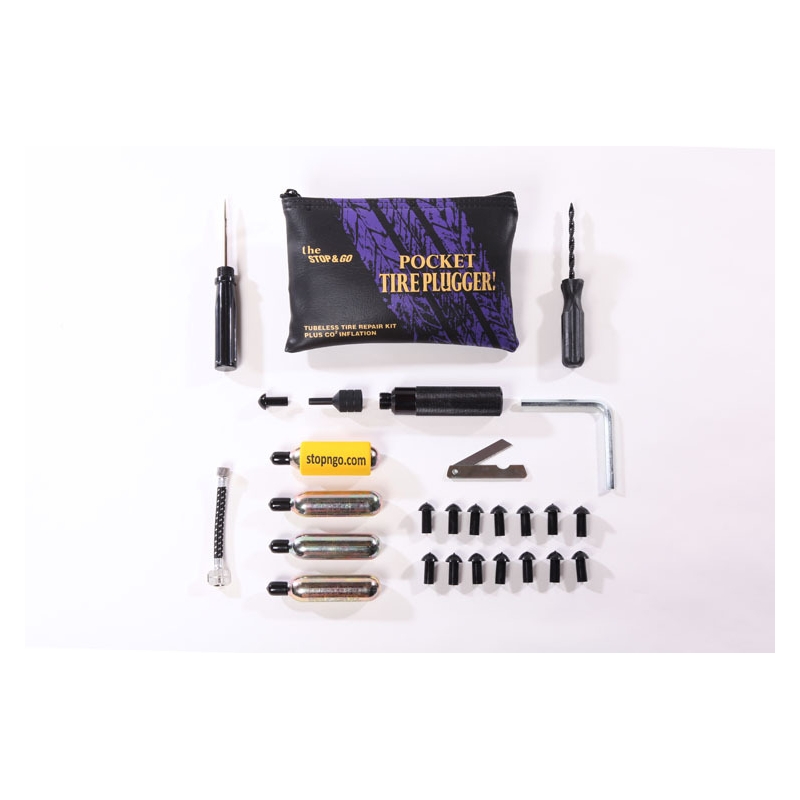 Este nuevo dispositivo revolucionario se instala fácilmente tapones de goma en forma de seta en todos los neumáticos sin cámara, mientras se mantiene en el volante. El dispositivo de taponamiento de la llanta 'empuja' el tapón de la llanta hacia el agujero, con un simple giro de la llave hexagonal. El tapón de goma se expande bajo presión al interior del neumatico para llenar el área pinchada. Un tirón firme en el vástago con sus alicates coloca la cabeza de hongo en la pared interior, lo que no permite que el aire escape. Esta tecnología asegura la máxima confiabilidad, al tiempo que reduce el tiempo de inactividad en cualquier situación.