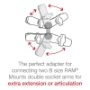 El adaptador perfecto para conectar dos brazos de doble zocalo RAM® de 1” para una extensión o articulación adicional