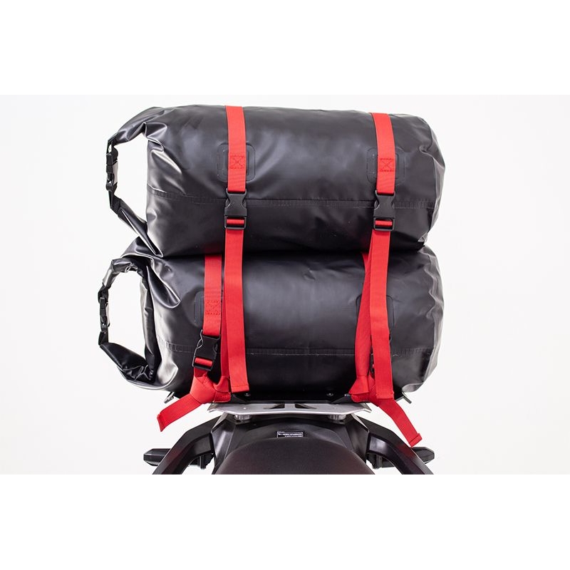 Amarrar las correas que quedan sobrantes luego de anclar el Dry Bag a la moto para evitar que se suelten progresivamente con la vibración durante el recorrido.