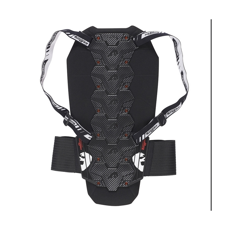 La correa de vientre brinda soporte lumbar y garantiza una correcta posicion del protector y las correas de hombro ajustables y desmontables se adecuan a las diversas estaturas de los motoristas.