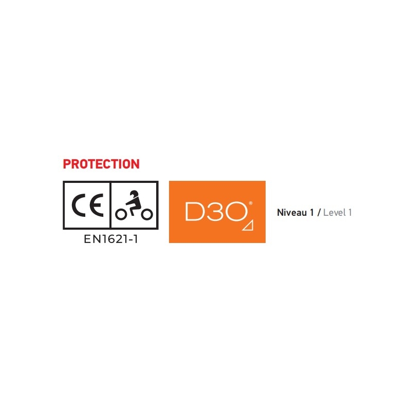 Este par de protectores nivel 1 construidos en D3O, un material muy suave cuyas moléculas se bloquean al impacto, absorbiendo la energía cinética. Esta tecnología permite crear protectores suaves, ergonómicos y ligeros de alta calidad.