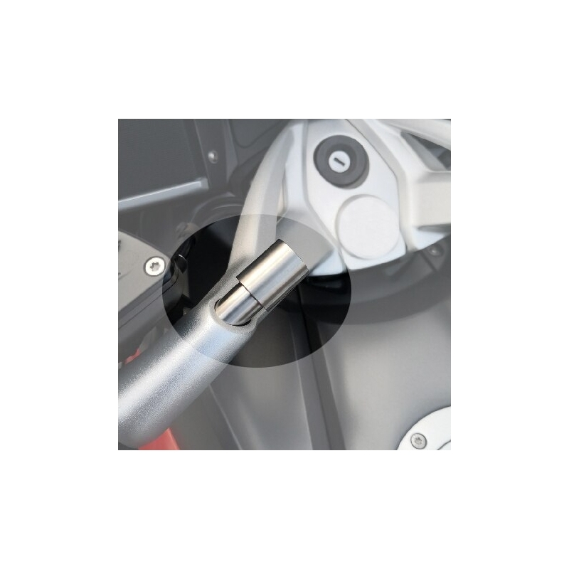 Elaborado en aleación de aluminio de alta calidad, con tornillo de acero inoxidable 316 y un diámetro del tubo redondo con cabeza fija: 22mm es facil de instalar ya que unicamente  reemplaza de manera seguro el tornillo original incluyendo la extension soporte que permite la instalación de distintos aditamentos en estos modelos de motos que no disponen de otro sitio para fijarlos.