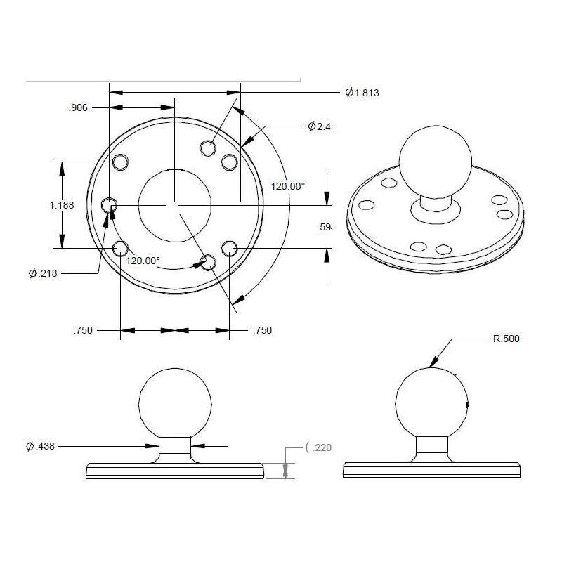 SOPORTE BASE REDONDA 2.5" AMPS BOLA 1"