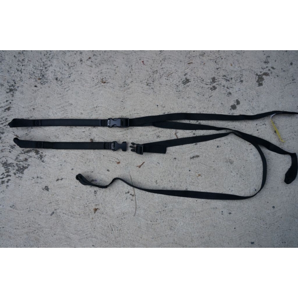 2-Acomode el objeto a transportar en su sitio, conecte las hebillas y ajuste al tamaño necesario, dando cierta tensión (no excesiva) que asegure no haya movimiento.