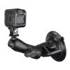 El kit completo RAM-B-166-GOP1U consta de un soporte de copa de succion de bloqueo giratorio de 3,3" de diámetro + un brazo mediano de aluminio de doble zócalo de longitud 3.69” + un adaptador para camaras de accion como GoPro® Hero y otras.