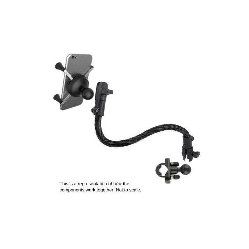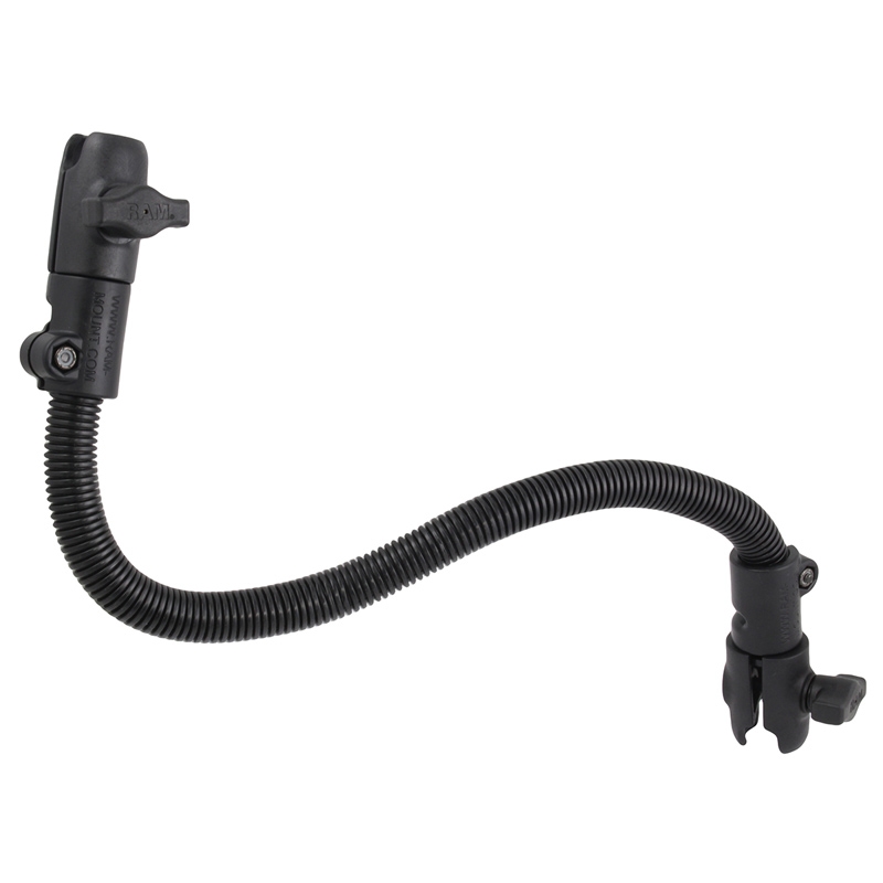 La varilla semi rígida de aluminio se puede doblar para colocar su dispositivo en su ubicación de visualización óptima. Las puntas de brazo son compatibles con todas las bases de bola y adaptadores de 1".