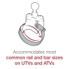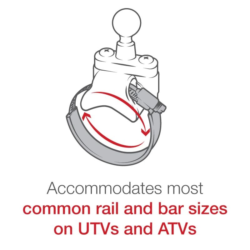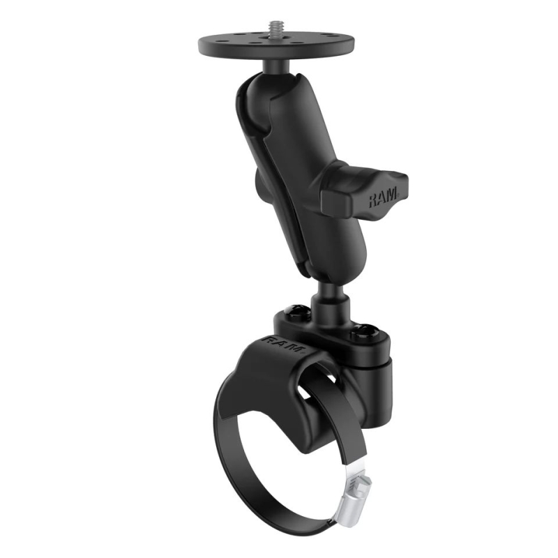 El RAM-B-149Z-2-202AU consta de una base con correa de acero, bases con perno en U, brazo de doble casquillo y base redonda de 2,5" de diámetro con poste roscado de 1/4"-20. Diseñada para una instalación limpia, la base de la barra antivuelco incluida se adapta a los tamaños de tubería más comunes en UTV y ATV, lo que permite la colocación de la base de bola de goma RAM. Al ocultar de forma segura una abrazadera de correa en una carcasa compacta, no tendrá que preocuparse por bordes afilados expuestos o aflojamientos no deseados. La base de la cámara contiene una bola de goma de 1" que está conectada a una base redonda de 2,5" de diámetro. Además, se incluye un perno de acero con rosca de 1/4"-20, centrado; la base redonda proporciona soporte y estabilidad para las cámaras que descansan sobre ella. El perno de acero con rosca macho de 1/4"-20 se conectará a cualquier hembra estándar. Hilo que se encuentra en videocámaras y cámaras digitales.