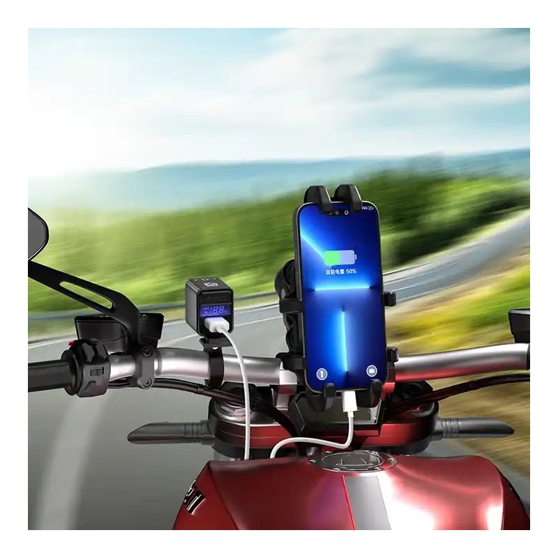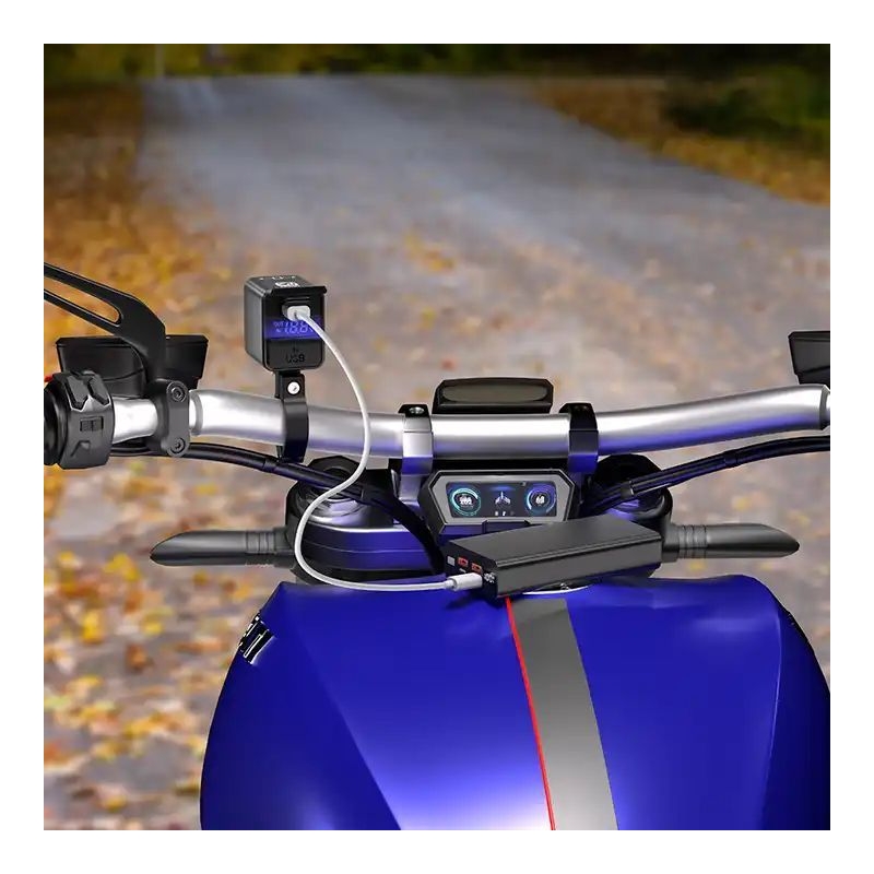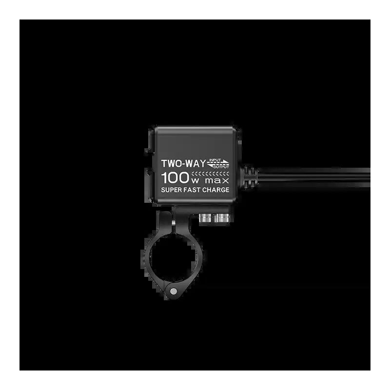 Carga tus dispositivos electrónicos y la batería de tu motocicleta con una velocidad ultrarrápida (hasta 100W), todo bajo un diseño exclusivo, resistente al agua con clasificación IP66.
