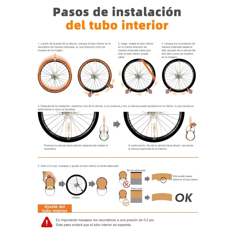 • Medida: 27.5” x 60 (Adecuado para varios tamaños de neumáticos este tubo interior de 27.5” es compatible con varios anchos