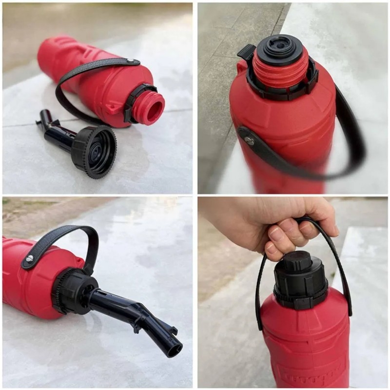 Bidon color rojo marca Woogok diseñado para contener y transportar hasta 1.8 litros de gasolina, ideal como solución de emergencia para Motos, ATV y UTV. Su tamaño y radio universal permiten que se adapte a la mayoría de los portavasos de motocicletas, vehículos recreativos y utilitarios todo terreno, brindando practicidad y fácil acceso en cualquier trayecto.