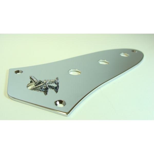 Placa metalica elaborada con materiales de alta calidad, en acabado cromado fino brillante. Tradicional en bajos Fender Jazz Bass vintage y modernos. Incluye tornillos.