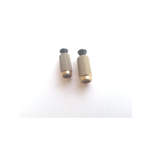 Postes para puentes con trémolo flotantes Floyd Rose Originales. Tambien quedan perfecto en puentes tipo Schaller,  Mighty Might y Wilkinson. Su cuerda fina permite ajustes más precisos. El socket mide 20mm de alto y 10. mm de diámetro. El poste mide 27.2mm de alto y 6.8 mm de diámetro. La altura del poste se ajusta con una llave Allen de 3mm. El set incluye dos piezas (dos postes y dos sockets).
