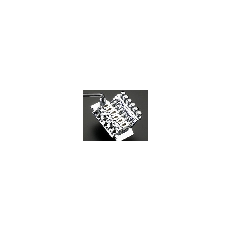 Floyd Rose Locking Trémolo manufacturado bajo licencia.  Fino acabado en cromado y en negro brillante. Incluye el set completo para su instalación: lock nut (cejilla de candado), brazo, postes sólidos de acero, resortes, sujetador de resortes, tornillos y llaves Allen.  La distancia entre postes es de 7.3cm. Fácil de instalar en guitarras Ibanez RG, Charvel, Jackson, etc..