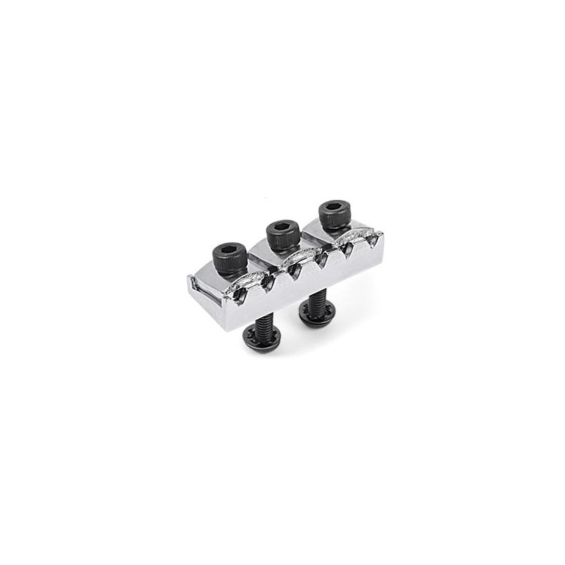 Cejilla Metálica Cromada con candado para sistema Floyd Rose de 41, 42 y 43 mm. Tenemos modelos para atornillar por arriba o por abajo. Elaborada con materiales de alta calidad, incluye tornillos de instalación y llaves Allen. Es un reemplazo exacto para sistemas de Trémolos Schaller, Floyd Rose originales, y otros de su tipo.