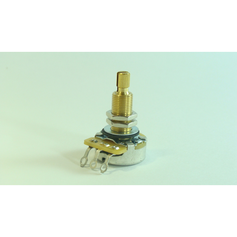 Los potenciómetros  CTS han sido la primera opción para los fabricantes de las mejores guitarras americanas. Sobresalen por sus postes de bronce de larga vida y menores márgenes de resistencia-tolerancia (+-10%). Y eso es mayor calidad de sonido!   En tu pedido especifica el calibre deseado.
