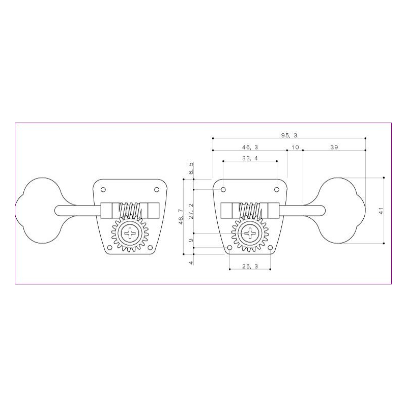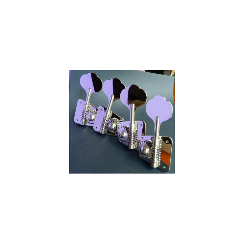 Maquinaría de la prestigiada casa japonesa Gotoh. En cromado brillante, cuenta con clavijas estilo "oreja de elefante" para bajos con maquinaria 2+2. Requiere hoyos de 11/16" de diámetro. Incluye tornillos para su instalación.
