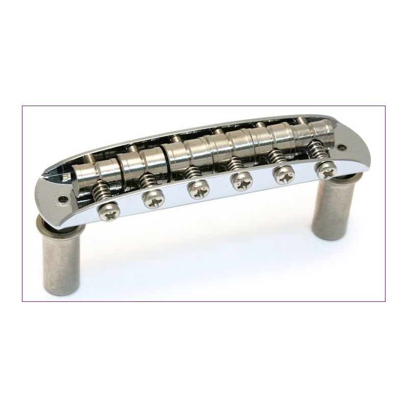 Puente cromado para Guitarras Fender Mustang y JazzMaster. Muy buscado para sustituir el puente de la JazzMaster ya que su puente original tiende a brincar las cuerdas.Sin problemas de instalación: es quita y pon. Incluye tornillos y dedales para su instalación.
