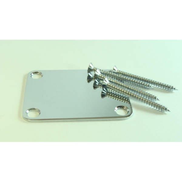 Tradicional placa metálica en acabado cromado fino, para sujetar el brazo al cuerpo de la guitarra. Se utiliza tanto en guitarras como en bajos Fender. Incluye tornillos Phillips de tamaño 1-3/4" de cabeza oval.