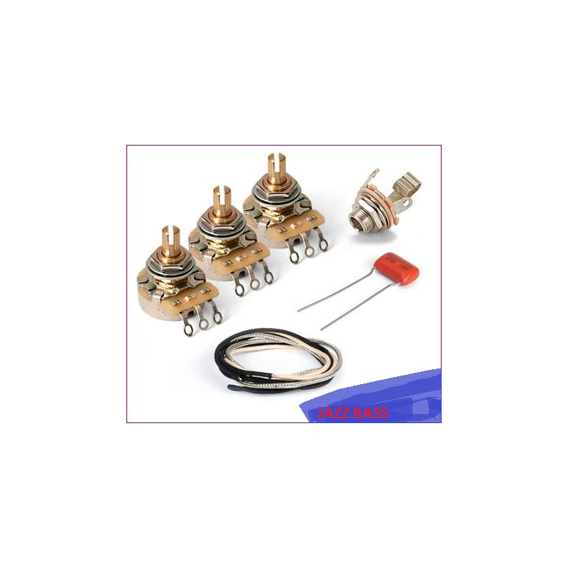El KIT BAJO JAZZ BASS (y para otros bajos de su tipo) incluye: 3 potenciometros CTS , un jack Switchcraft, un capacitor Orange Drop y Cableado de Circuito Vintage forrado de tela/blindado trenzado.