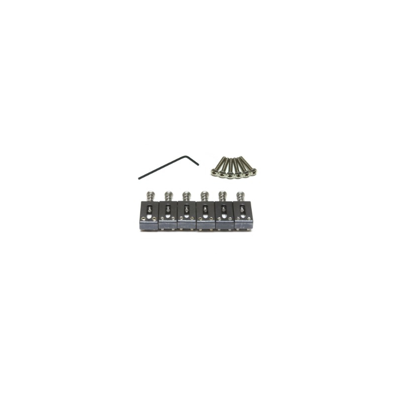 Reemplazo y mejora perfecta de las monturas de las guitarras Fender Stratocaster y Telecaster hechas en Estados Unidos- Elaboradas con PTFE que es super deslizante, reducen la friccion y la rotura de cuerdas. Producen un mejor balance tonal que las monturas de acero. Abren un nuevo mundo de posibilidades sónicas. Te sorprenderá la revelación de un amplio contenido armónico. Medidas: largo 20.7 , amcho 11.2 , alto 5.8 mm. Distancia total entre cuerdas 55.4 mm (2 3/16")
