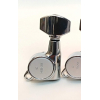 Producto del fino maquinado y pulido de la casa japonesa Gotoh, esta maquinaria IZQUIERDA Cromada es una de las mejores disponibles. Cuenta con clavijas grandes estilo Schaller, removibles, y encasillado de acero forjado y lubricado sellado.  Para guitarras izquierdas o con clavijas abajo  6 en línea. Incluye tornillos para su instalación.
