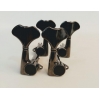 Maquinaria de acero forjado, con lubricación sellada. Esta versión Black Cosmo (Negro Humo) de clavijas compactas es exacta para cabezales de modalidad 2+2. Requiere hoyos de 9/16". Incluye tornillos.