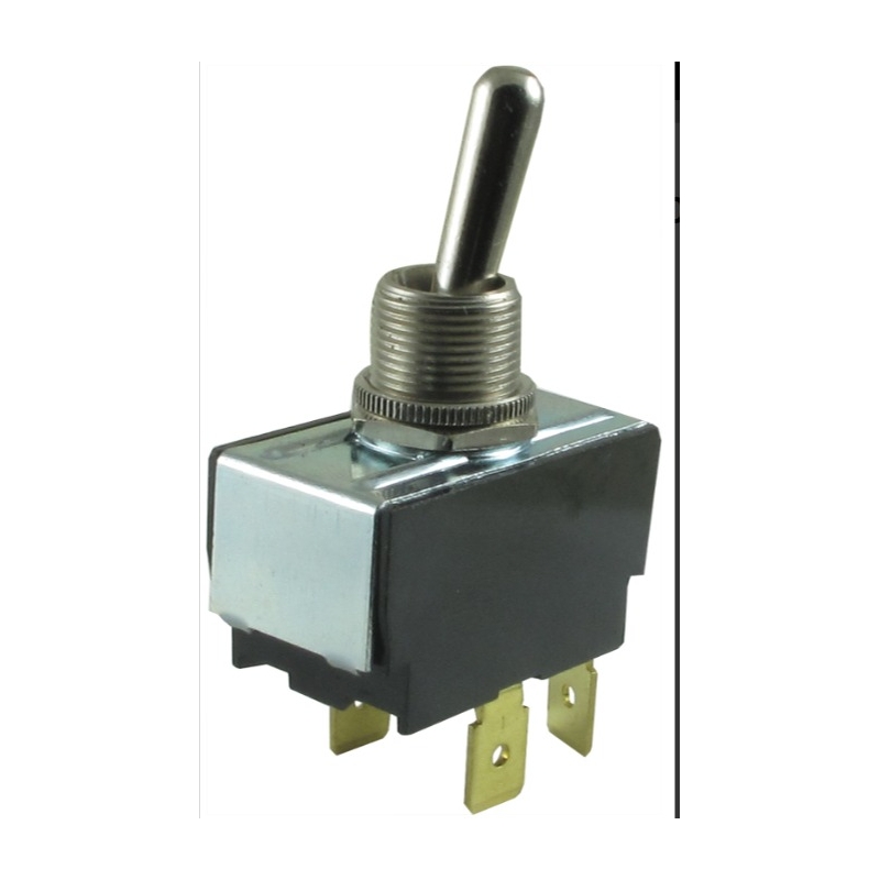 Switch marca Carling para amplificador.   3 amperes 125 Vac, 6 Amperes 250Vac. Construcción robusta para trabajo rudo.  Mide 3.2 x 1.7 x 3cm, la rosca mide 1.2 cm de diámetro.