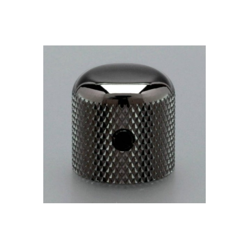 Botón Domo color Cosmo Black marca Gotoh de alta calidad, metálico de moleteado fino. Tradicional en las guitarras Telecaster y Bajos Fender, pero también usado en muchas otras guitarras, bajos y Steel guitars. Mide 18x 18 mm. Para poste de 6 mm. Incluye tornillo para fijarlo.