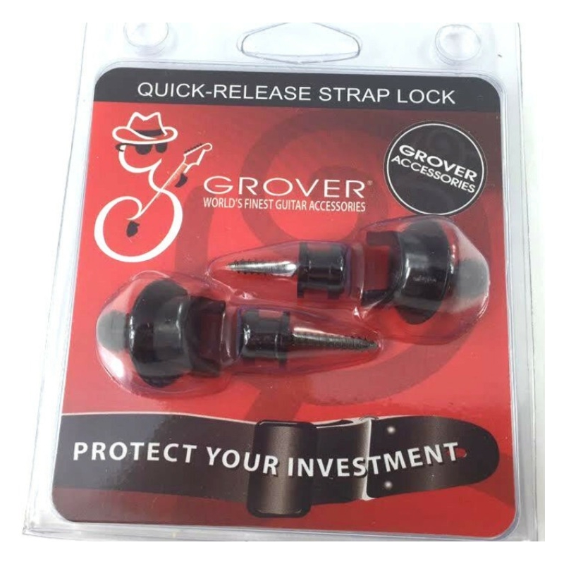 Quick-release:  Sistema Grover de dos piezas pulidas, color negro,  que permite mantener la correa segura y tu guitarra también. De fácil y rápido enganche/desenganche. No daña tu guitarra o tu correa.